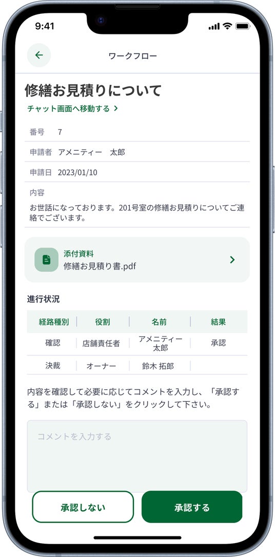 見積書や提案内容をチャットで受信し、アプリ内でそのまま承認!スピーディに対応できる