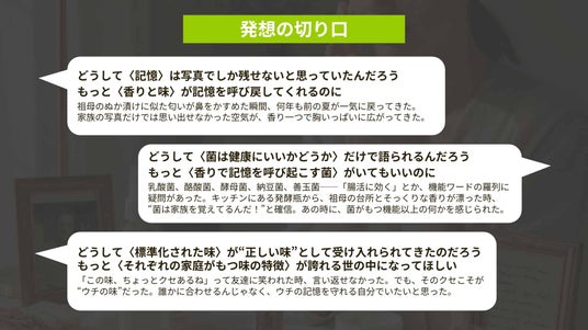 各事例には、「そのアイデアがなぜ生まれたか」の背景分析や、ターゲット像も添えられており、 社内ワークショップ、新規事業会議、販促コンセプト立案など、さまざまな現場で活用いただけます。