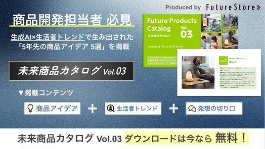5年後のライフスタイルを形づくる商品アイデアを厳選収録。SEEDER株式会社が提供する「Future Store」の知見をもとに編纂された『未来の商品カタログvol.3』が、2025年7月に公開されました。無料ダウンロードで、次世代の企画力を手に入れるチャンスです。