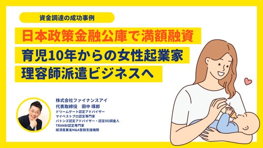 資金調達成功事例-育児後10年を経て理容師の創業融資を成功へ日本政策金融公庫から満額融資成功。育児10年から挑戦する女性起業家。育児から10年。理容師派遣ビジネスで挑戦する女性起業家の物語。