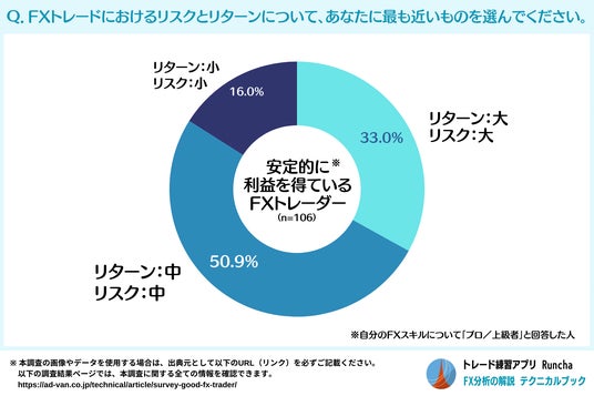 テクニカル分析専門サイト『テクニカルブック』は、勝ち組FXトレーダーの実態を調査する目的で、FXで安定的に利益を得ている20歳以上の男女106名を対象にアンケートを行いました。本調査からは、FXにおけるテクニカル分析の重要性とスキルアップのためのヒントが見えてきました。調査サマリー今回の調査結果に関する概要は以下の通りです。