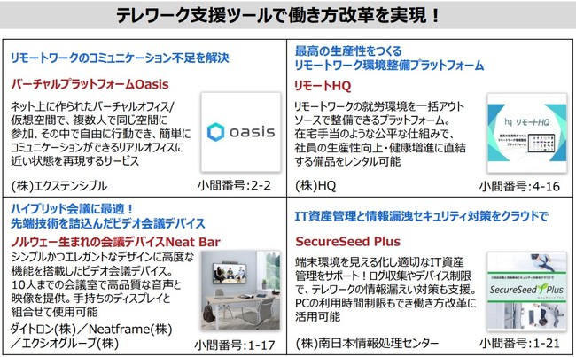 1.働き方改革やテレワークを支援するソリューションから、コミュニケーションツールなど、