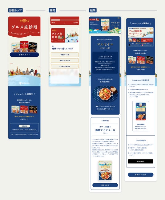 https://yonde.co.jp/service/shindan/works/mizkan本キャンペーンでは、「旅」をテーマにした診断体験を通じて、世界の鍋を楽しめる鍋つゆ「鍋THE WORLD」シリーズを自然に訴求しました。