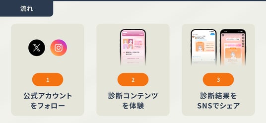 YONDEの「診断キャンペーンプラン」は、ユーザーが主体的に参加しながら商品やブランドへの理解を深められる診断体験を設計。体験とSNSシェアを組み合わせることで、参加と拡散が自然に循環するキャンペーン設計を実現します。