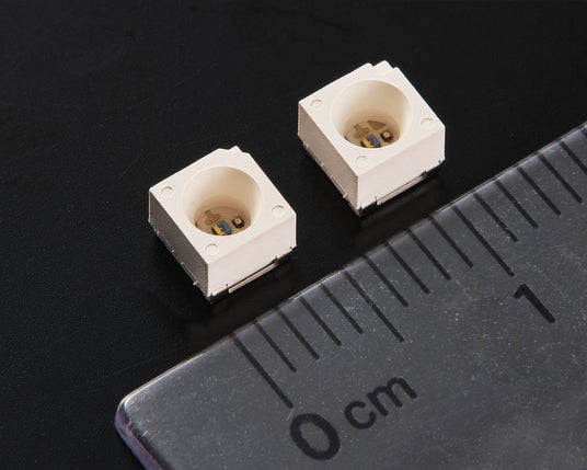 今回ロームが開発したのは、0.5mm×0.5mmサイズのテラヘルツ波発振用及び検出用のRTD素子です。周波数320GHz(Typ.)、出力10µW ~20µWのテラヘルツ波を発振、検出できます。このRTD素子を、LEDなどに用いるPLCCパッケージ(*2)(4.0mm×4.3mm)に搭載したサンプル品の提供を開始します。従来方式(*3)の発振装置と比べて体積は1000分の1以下と小型であり、限られたスペースでも手軽にテラヘルツ波アプリケーションの開発環境を構築できます。