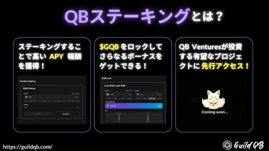 GuildQBは今回のロック付きステーキング機能の提供を皮切りに、さらなる利回り強化とユーザーインセンティブの拡充を進めてまいります。