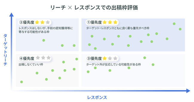 これまでどちらかしか見られなかったテレビCMのターゲット視聴人数とレスポンス効率の2つの指標を併せて見ることで、より確度の高いプランニングを実現