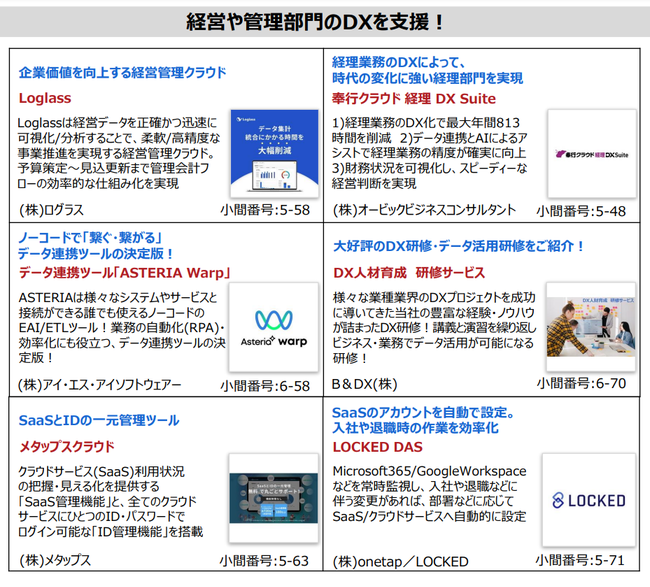 このほかにも、管理部門のDX推進を支援する多数の企業・製品(サービス)が出展!