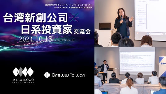 株式会社みらい創造インベストメンツ(代表取締役社長:岡田祐之、所在地:東京都港区、以下「みらい創造インベストメンツ」)は、酷日國際有限公司 (CEO:林玲妃、所在地:台湾台湾台北市、以下Creww Taiwan)との共催で、10月15日に東京科学大学キャンパス・イノベーションセンターにて、日系投資家向けの台湾スタートアップとのマッチングイベントを開催しました。台湾から7社のスタートアップが来日し、投資家との交流の場が提供されました。