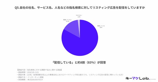 - リスティング広告の運用に携わっている方のうち、83%が指名検索に対するリスティング広告を配信していると回答