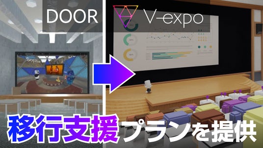 株式会社m-Lab(本社: 東京都中央区、代表取締役:村上進也、以下m-Lab)は、株式会社NTTコノキューが提供する仮想空間プラットフォーム 「DOOR」 のサービス終了(2025年3月31日)に伴い、V-expoへの移行支援プランを提供開始いたしました。