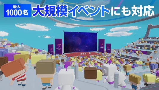 V-expoは、WEBブラウザに特化したメタバースプラットフォームとして、最大1会場1000名の同時接続を可能にする軽量かつ高品質な空間を提供。DOORからの移行により、より大規模な活用が可能となります。