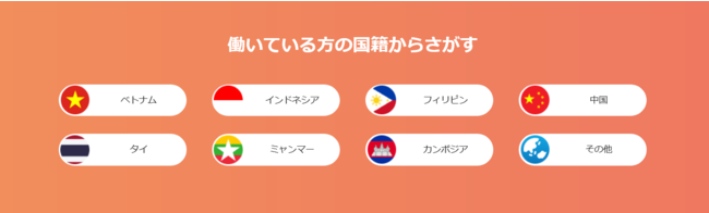 働いている方の国籍、勤務地、業種など求職者が気になる検索機能を提供