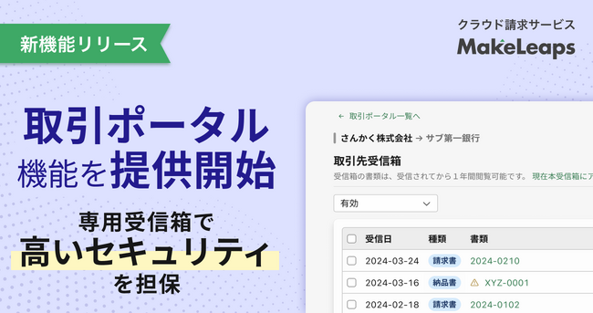 リコーグループのメイクリープス株式会社(本社:東京都目黒区、代表取締役社長:岡田 泰、以下メイクリープス)が提供するクラウド型請求管理サービス「MakeLeaps」は、新機能「取引ポータル」を提供開始したことをお知らせいたします。