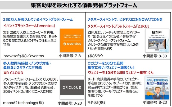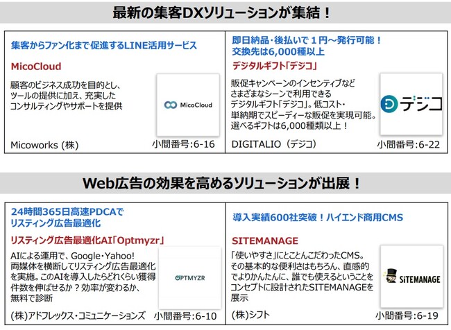 このほかにも、集客・宣伝部門のDX推進を支援する多数の企業・製品(サービス)が出展!