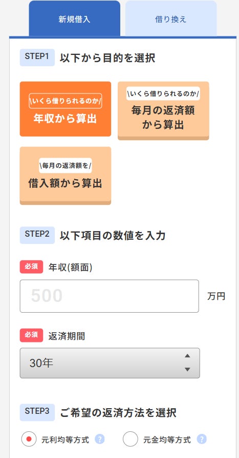 簡単にシミュレーションが可能:必要な借入金額や現在の借入残高を入力するだけで、最適なプランをシミュレーションできます。返済方法や金利のタイプも選べるので、借り入れる前に、どの程度の負担が発生するか具体的にイメージすることができます。