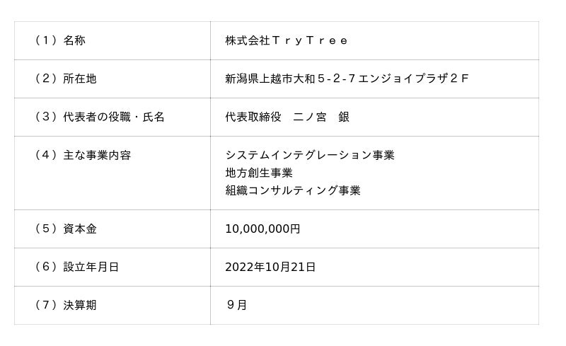 株式会社フォーカスシステムズ 当社は、2025年9月22日開催の取締役会において、当社とシステム開発に関する業務委託契約を締結している株式会社TryTree(本社:新潟県上越市、代表取締役:二ノ宮銀、以下「TryTree」)の株式を取得し、同社を当社の持分法適用会社とすることを決議いたしましたので、お知らせいたします。なお、TryTreeに対する当社の議決権比率は20%となる予定です。