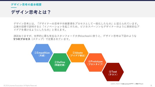 本資料では、デザイン思考の概要や日本企業における活用状況、そして実際にデザイン思考を取り入れた企業の事例を解説しています。