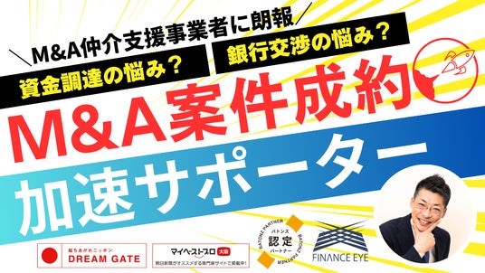 M&A仲介・FA・事業承継の支援事業者に朗報!成M&A案件成立が加速するサポータ。買収資金の資金調達・金融機関交渉をサポート