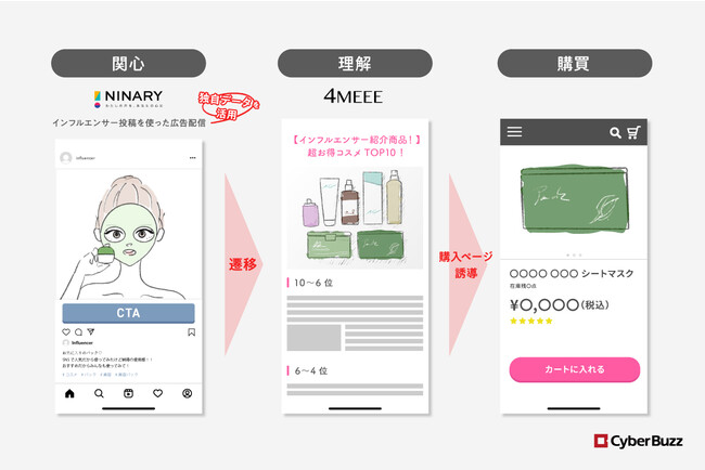 サードパーティーCookieへの規制や、SNS上での情報収集が主流となり従来手法(Outbrain, popIn等)の広告効果が減少している中で、当社が保有する独自の大量のインフルエンサーインサイトデータと、『4MEEE』アカウントのオーディエンスデータを連携させ、高効率なレコメンド配信をご提供可能に。