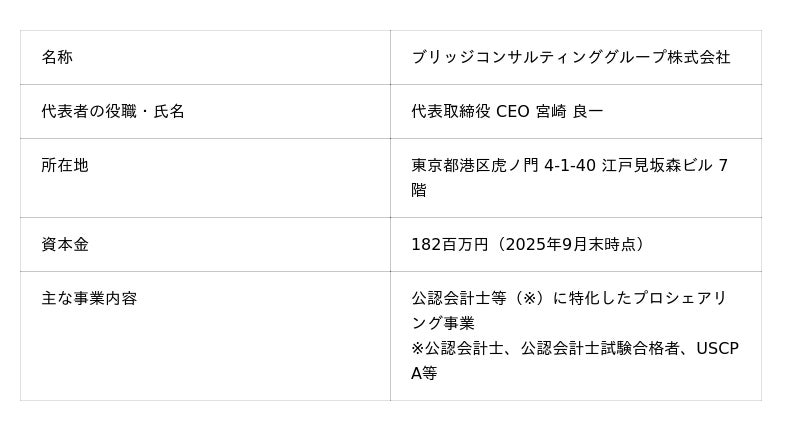 公認会計士人材の知見・経験を活用した経営管理支援サービスを展開するブリッジコンサルティンググループ株式会社(所在地:東京都港区、代表者:宮崎良一)は、自社メディア「IPO MEDIA」にて、クリニファー株式会社(本社:大阪府大阪市)の東京プロマーケット(以下、TPM)上場をテーマにした支援事例記事を2026年1月19日に公開しました。