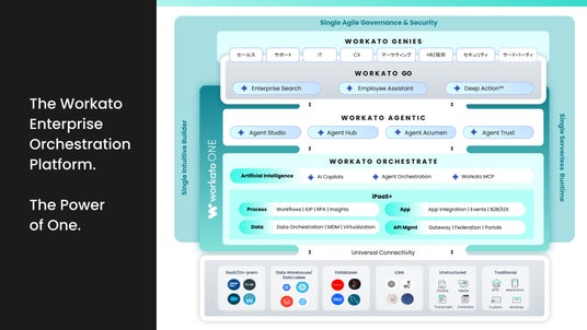 Workato社についてWorkatoは、テクノロジーの複雑さをビジネスチャンスへと転換します。リーディング・エージェンティック・オーケストレーション企業として、Workatoは企業のデータ、プロセス、アプリケーション、そしてエクスペリエンスを連携・統合し、ビジネスの成長を支援します。AI主導のプラットフォームは、複雑なワークフローをリアルタイムで操作し、効率性と俊敏性を向上させます。12,000社以上のグローバル顧客から信頼されているWorkatoは、あらゆる規模の組織が新たな価値を創造し、今日の急速に変化する世界においてリーダーシップを発揮できるよう支援します。Workatoがあらゆる規模の企業のビジネス成長をどのように支援しているかについては、