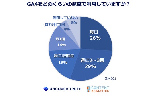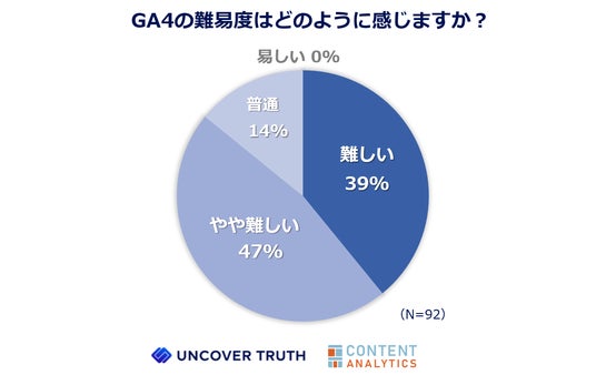 Webサイトの閲覧行動から顧客の興味関心を捉える次世代型解析ツール『Content Analytics(以下:コンテンツアナリティクス)』を提供する株式会社UNCOVER TRUTH(本社:東京都渋谷区、代表取締役:石川敬三)は、Google Analytics4(以下GA4)を活用している企業のマーケター92名を対象に「GA4の利用状況と難易度に関する調査」を行いました。