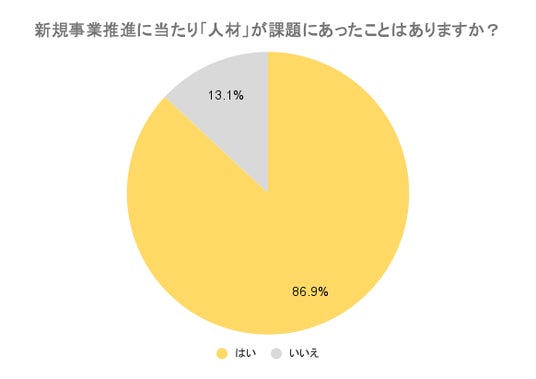 Spready株式会社が2024年11月に実施した「新規事業実態調査2024」(回答数306件)の中で、質問「新規事業推進に当たり『人材』が課題にあったことはありますか?」に対して、86.9%が人材に課題認識を持つとの回答が寄せられました。イノベーター発掘や育成について多くの企業で課題となっていることが見受けられます。
