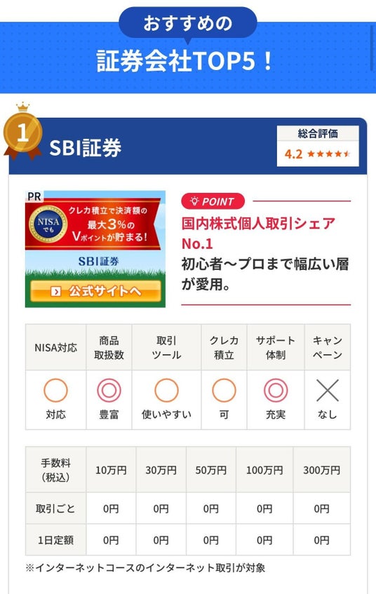 多様なニーズに対応: 「NISAにおすすめランキング」をはじめ、「米国株ランキング」や「投資信託ランキング」、「手数料が安いランキング」や「クレカ積み立てランキング」など、ユーザーの多様なニーズに対応した検索、絞り込み機能で必要な情報を提供します。