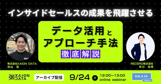 BtoB SaaSのインサイドセールス支援事業を展開するRECERO株式会社と最先端SalesTechを提供する株式会社XAION DATAは、企業のインサイドセールス責任者/担当者向けに、「インサイドセールスの成果を飛躍させる!データ活用とアプローチ手法を徹底解説」というテーマの無料のオンラインウェビナーを開催します。