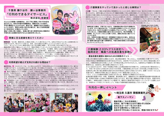 日本介護事業株式会社(本社:東京都墨田区/以下、日本介護事業)は、フランチャイズブランド「だんらんの家」の広報誌『だんらん日和』1月号を発刊しました。