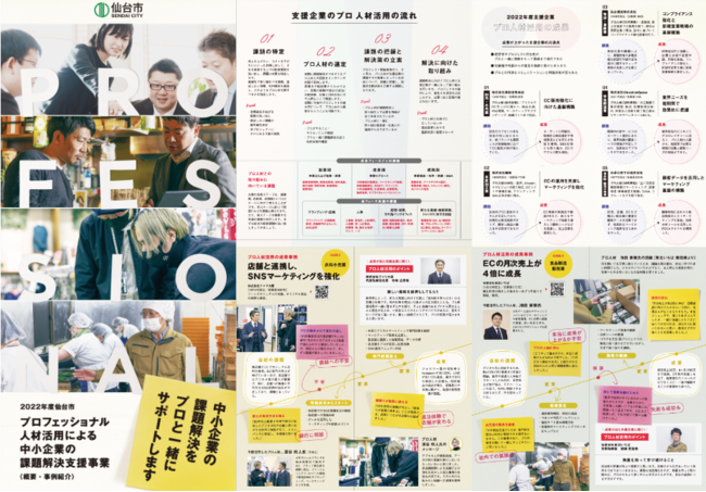 また、昨年度事業を活用した15社全社の成果を掲載した成果報告パンフレットも発行しました。仙台市公式ホームページにパンフレット全文が掲載されています。