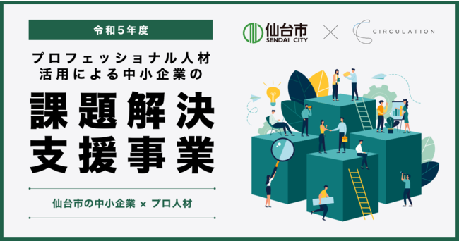 20,000名以上のプロの経験・知見を複数の企業でシェアし、経営課題を解決するプロシェアリング事業を運営する株式会社サーキュレーション(所在地:東京都渋谷区、代表取締役社長:久保田 雅俊、以下サーキュレーション)は、仙台市より「令和5年度 プロフェッショナル人材活用による中小企業の課題解決支援事業」(以下、本事業)を受託しました。本事業では、仙台市の支援を受ける12社が、社内だけでは解決できない経営課題に対して、全国からマッチングされたプロ人材と共に課題解決に取り組みます。プロ人材活用を検討する企業のための2つの無料イベントも実施予定です。
