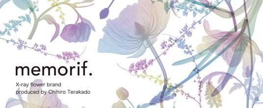 彼女がフラワーデザイナーとしての仕事を始めた頃、まだ綺麗な花を処分しなければならないことがあった。その時に幼い頃に見た祖母に丁寧に手入れされた切り花を思い出し、処分されていく花に違和感を抱く。そこから花の美しさを伝え、人の記憶に残していくことを考え、花をレントゲンで撮影する手法をスタートする。メモリフでは繊細なラインや透明感を生かしたデザインに、大胆な着彩を施し、肉眼では見ることのできない植物の美しさ(アート)を表現している。