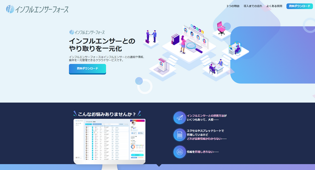 インフルエンサーフォースは、インフルエンサーとの連絡や情報、案件を一元管理できるクラウドサービスです。