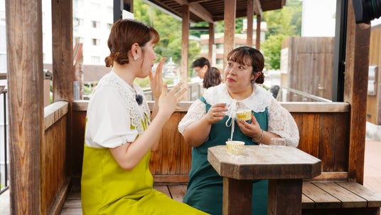 ここでは、道後温泉を見渡しながら源泉かけ流しの足湯を無料で楽しめる、まさに女子旅にぴったりの癒しスポットを体験。ぽかぽか温まる足湯に浸りながら女子トークも弾み、身も心もホットに。湯上がりには、口いっぱいに香り広がる「訳ありみかんチーズケーキ」(チーズケーキ3℃)を堪能しました。このチーズケーキは、フードロス削減の取り組みとして、規格外となった愛媛県産柑橘を活用。チーズケーキの口溶けと、爽やかで香り高い柑橘の風味が重なり、思わず笑顔がこぼれてしまう2人。足湯に癒され、とろけるスイーツに癒され、癒しづくしの女子旅タイムを大満喫されている様子でした。
