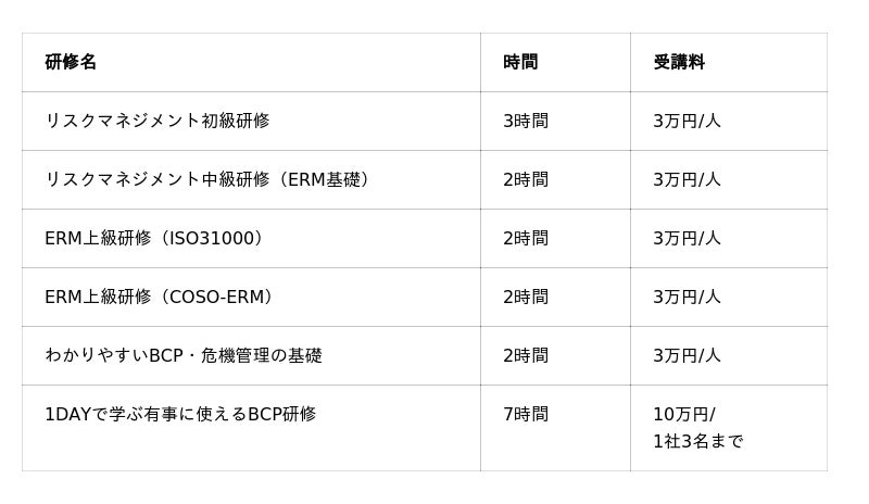 企業の持続的成長を支えるERM、BCP研修を中心に多彩なプログラムを提供。書籍プレゼントキャンペーンも開催