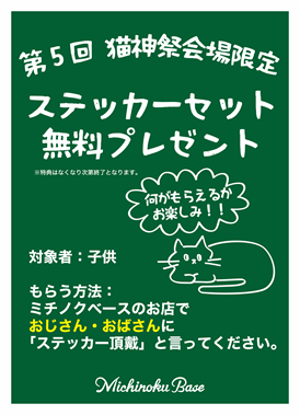 イベント当日限定でInstagramのフォロー&いいねでもらえるプレゼントキャンペーンとステッカーセットの無料配布をお子様向けに実施予定です。