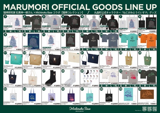 猫碑コレクションのほかに、丸森町公式キャラクターねこがみとうぐいすPの商品や丸森町在住のイラストデザインユニット(集団)による”Marumori Cat Town”シリーズなど、全40種が発売されます。