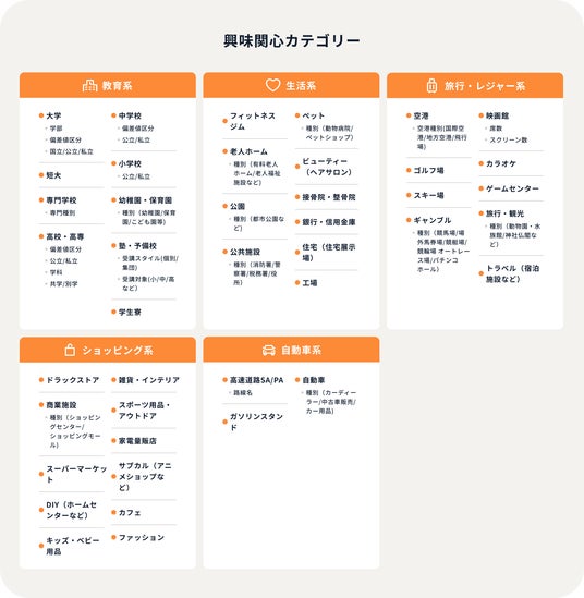 月間2,600万UUの位置情報データから独自の地点リストを整備。興味関心カテゴリーは40種類以上、地点カテゴリーは10種類に拡充し、より細かいターゲティングが可能となりました。