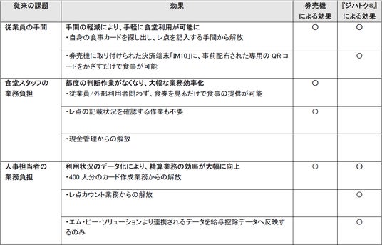 ■券売機と『ジハトク(R)』導入によって期待される効果 券売機と『ジハトク(R)』が導入されることにより、従来の課題に対して以下の効果が期待されています。