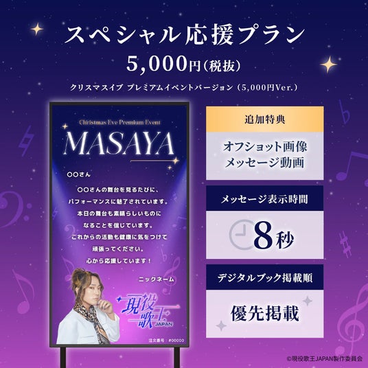 *『現役歌王JAPAN クリスマスイブ プレミアムイベント』でのメッセージギフトは事前受付のみ、イベント当日に反映