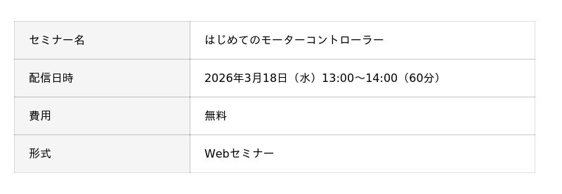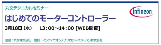 エレクトロニクス商社の丸文株式会社(代表取締役社長 兼 CEO / COO︓堀越裕史、本社: 東京都中央区、以下、丸文)は、3月18日(水)にインフィニオンを題材として、モーターの種類や制御方式、モーターコントローラーICの製品紹介と評価環境が学べる無料のオンラインセミナーを開催します。