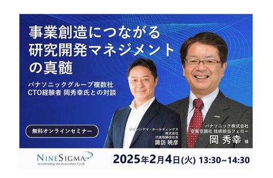 【事業創造につながる研究開発マネジメントの真髄:パナソニックグループ複数社CTO経験者 岡秀幸氏との対談】と題した無料オンラインセミナーを2月4日に開催いたします。本日より参加登録を開始いたします。