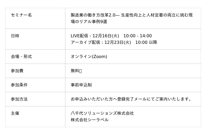 「働きやすい現場づくり」を通じて競争力を高めたい製造業の皆さま、ぜひご参加ください。