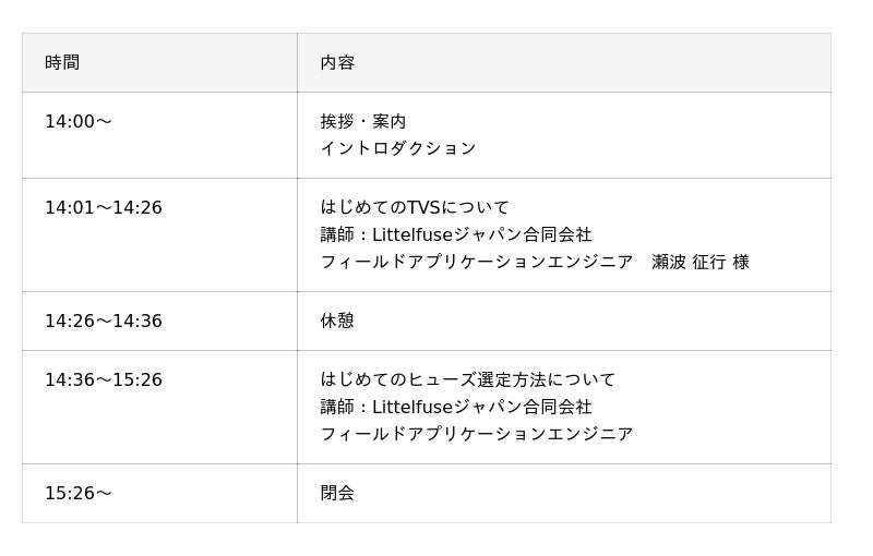 本セミナーでは、TVSやヒューズの概要、重要となる用語、ポイント、注意点、使い分け、選定ノウハウを交えながらご説明いたします。