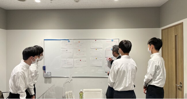 佐賀県唐津市の早稲田佐賀高等学校では、高校1年生が将来を考える機会として修学旅行「東京研修」を実施しています。2022年11月8日、同行の生徒が東京都内の企業を訪問し、職業体験を実施。揚羽では4名の生徒を受け入れ、ブランディングの難しさ・楽しさを体感する「唐津市ブランディングワーク」を実施しました。