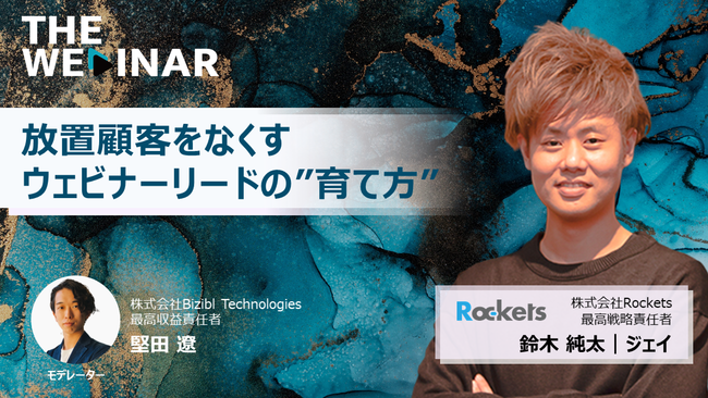 第2弾企画は、株式会社Rockets 最高戦略責任者の鈴木純太氏をゲストに迎え、「放置顧客をなくすウェビナーリードの育て方」というテーマでお届けします。