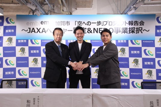 石川県加賀市(市長:宮元 陸)と連携協定を結び、加賀市のインキュベーションルームに入居するスタートアップのemblem株式会社(本社:東京都世田谷区、代表者:長濱 賢吾)は、2024年12月23日、「「空への一歩」プロジェクト報告会~JAXAベンチャー認定&NEDO事業採択~」と題した報告会を開催しました。