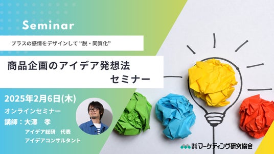 株式会社マーケティング研究協会は2月6日オンラインセミナー「商品企画のアイデア発想法 ~プラスの感情をデザインして “脱・同質化”~」を開催する。